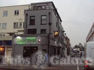This place had been home to some rather intimidating East Europeans, perhaps attracted by the Krušovice sign, strangely extant. There’s now an obviously bogus Irish theme to the place, name aside, the clue is in the emerald green exterior colour scheme. This continues inside, with along with the herringbone parquet floor, there’s much green paint to the walls (see photo), some white paint and green glowing spherical sconce lights with similarly green fairy lights. There’s little in the way of décor aside from some mixed prints and distillers’ mirrors and furniture is traditional. Naturally there are TVs (six) showing silent tennis and pre-recorded horse racing, a soundtrack coming perhaps from the jukebox; there’s also a games machine. Customers were local Dalstonians and few at the time of my visit last night nearing 10.00pm, but there was still quite a good atmosphere.
